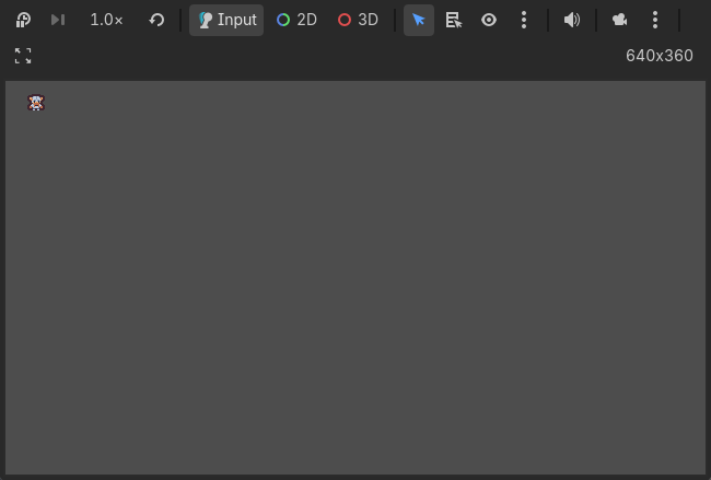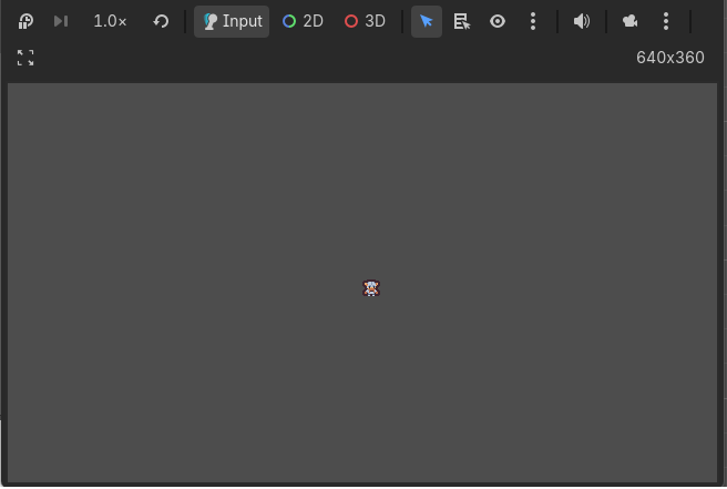 Let’s run the game. We can see our player sprite, but you may notice that they aren’t positioned in the center of the viewport as intended: