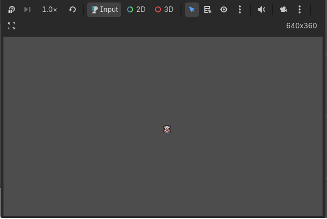 Let’s run the game. We can see our player sprite, but you may notice that they aren’t positioned in the center of the viewport as intended: