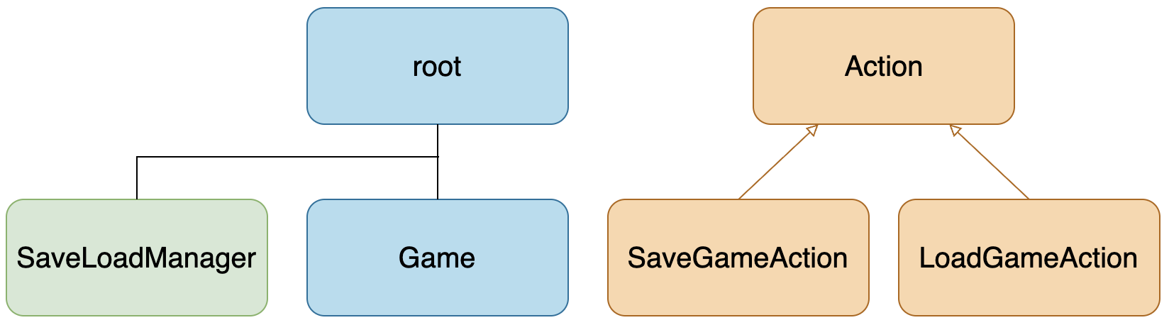 In addition to the SaveLoadManager autoload, we’ll also create two new Actions: a SaveGameAction and LoadGameAction. Their uses should be self-explanatory.