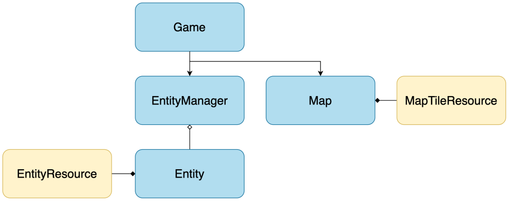 The action in our game will take place on the Map, a child node of the Game. The Map is essentially a container for tiles and helper methods, and much like the EntityResource, we’ll create a MapTileResource to store the relevant tile data.
