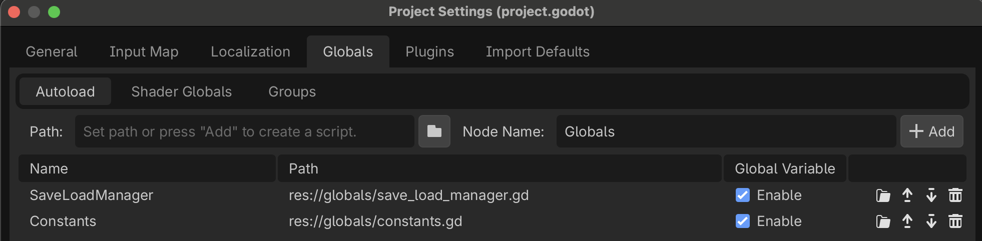 Before creating our Entity, we’re going to create a new autoload script to hold constant values we need to access from various parts of the game.